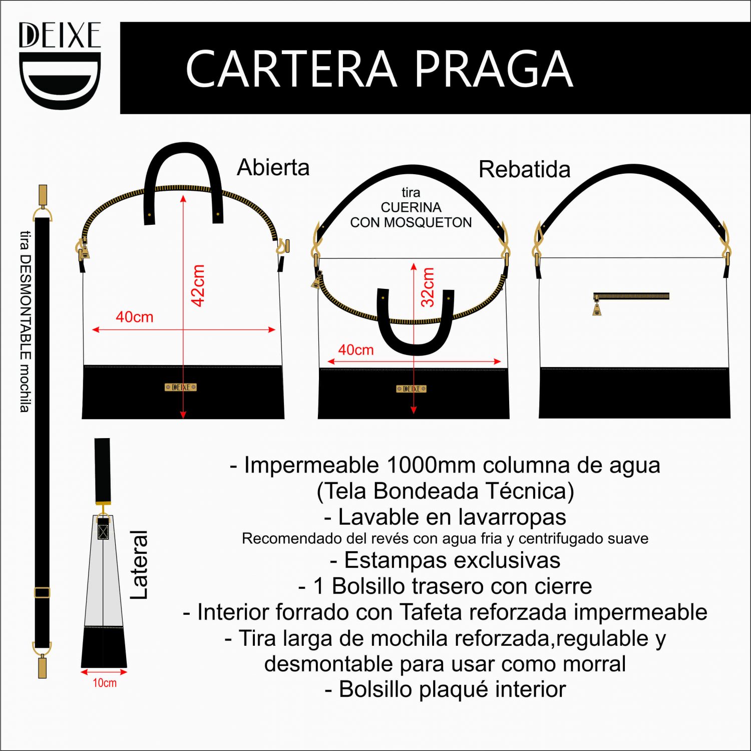 – Interior forrado con Tafeta reforzada impermeable